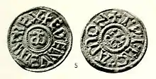 The obverse and reverse of a coin from the reign of Æthelweard.