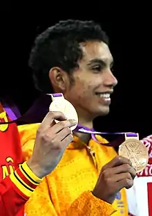 Óscar Luis Muñoz Oviedo (born 9 May 1993) is a Colombian taekwondo practitioner who won a bronze medal at the 2012 Summer Olympics in the -58 kg weight class.[2] This was the fifth Olympic medal for Colombia at the 2012 Summer Olympics, and the first medal in this sport. At the 2016 Olympics he was eliminated in the first bout.