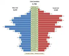 A graph of Ōtsuki's gender distribution by age (Basic Resident Registration results from October 1, 2006).[9]