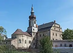 The village includes the hamlet of Sarny with its 16th-century castle and 19th-century park. The castle, owned for centuries by Czech, Habsburg and then German noblemen, in 1866 was the birthplace of Gustav Adolf von Götzen, German Governor of German East Africa.