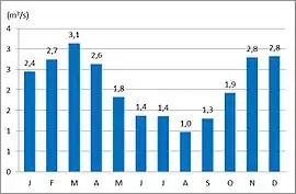 The average monthly discharge of the Ščavnica at Pristava (1971–2000)