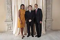 On 17 January 2022, he met with Pope Francis in Vatican City.[58] Following their meeting, Francis praised Komšić, saying that "he is a good person."[59] On 9 February 2022, Komšić went to Madrid, where he held a bilateral meeting with Spanish Prime Minister Pedro Sánchez and also spoke with King Felipe VI.[60][61]