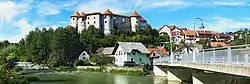 Between 1526 and 1533, the prince bishop Christophorus Rauber fortified the castle and added seven defence towers or bastilles.[2] As a result of its new strength, the brothers Jurij and Wolf Auersperg from Turjak bought the castle in 1538, and for centuries the castle and town were in the possession of the leading noble Auersperg family.[3][4] One of its most esteemed owners was Johann Weikhard of Auersperg, the tutor of the emperor Ferdinand III, who was court councillor and the first minister in the Habsburg monarchy, and who obtained family rights to prevent the castle's sale.[4] In the 16th century the town suffered repeated attacks. In 1559, the castle was conquered by Gregor, an illegitimate son of Georg von Auersperg with eighteen soldiers, but this conquest was quickly suppressed, and the castle was recaptured by Herbard VIII von Auersperg, the general of the Croatian region of the time, and the dead soldiers were thrown into the forest to be devoured by wild beasts.[2] In 1575, Countess Ana von Eck from Brdo Castle was killed by a tame bear in the castle courtyard.[4]