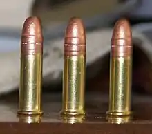 ![]() .22 Long Rifle – subsonic hollow point (left), standard velocity (center), hyper-velocity hollow point (right) | ||||||||||||||||||||||||
