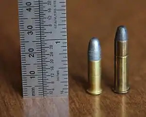 ![]() .22 Long Rifle (left) and .22 Winchester Rimfire (right). | ||||||||||||||||
