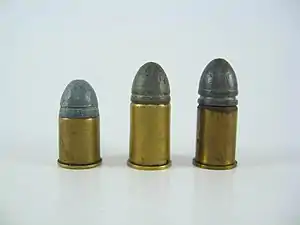 - ↑ Barnes, p. 170, ".44 Webley/.44 R.I.C.", and p. 165, ".41 Long Colt".