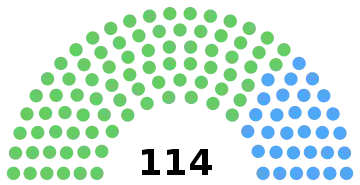 All 114 seats in the Storting 57 seats needed for a majority | |||||||||||||||||||