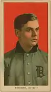 First baseman Claude Rossman played for the Tigers from 1907 to 1909. In 1908, Rossman had the best year of his career with 33 doubles (2nd in the AL), 219 total bases (3rd in the AL), and 48 extra base hits (3rd in the AL). On August 20, 1909, the Tigers traded him to the St. Louis Browns for Tom Jones. Rossman had a peculiar emotional quirk where he sometimes froze and could not throw the ball when he became excited. Runners would lead off first to draw a throw from the pitcher, then run to second when Rossman froze.[3] He was 28 when he played his last major league game and died at age 46 in a New York hospital for the insane where he had been a patient for several years.