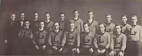 The starting lineup was Hall (left end), Seip (left tackle), Thomas (left guard), Stovall (center), Drew (right guard), Hillman (tackle), R. Stovall (right end), Gill (quarterback), Howell (left halfback), McCollum (right halfback), Ryan (fullback).[11]