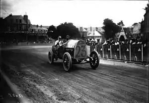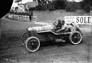 Once again the AC de la Sarthe et de l’Ouest[19](forerunner of the Automobile Club de l'Ouest) organised its own event – the Grand Prix of France, also known as the Coupe de le Sarthe, and not to be confused with the Grand Prix run by the ACF. It used the same course as the previous year, but this time ran in a clockwise direction. Both Grand Prix and voiturette cars were entered.[19] However the only large race-cars to arrive were the works Peugeots of Boillot and Goux, and a SPA. Many of the French voiturette teams at Dieppe were entered and this time both Thomas and Zuccarelli with the Lion-Peugeot L3.