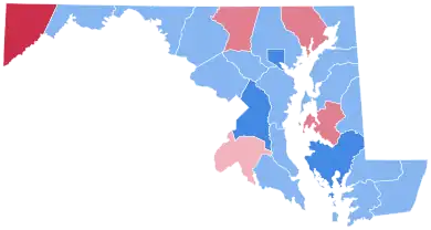 | Baltimore City | 199,715 | 63.20% | 112,364 | 35.56% | 3,917 | 1.24% | 87,351 | 27.64% | 315,996 |