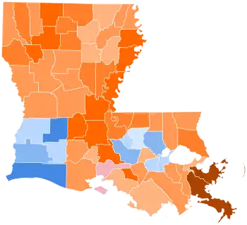 | Tangipahoa | 2,184 | 29.48% | 1,287 | 17.37% | 3,919 | 52.90% | 18 | 0.24% | -1,735 | -23.42% | 7,408 |