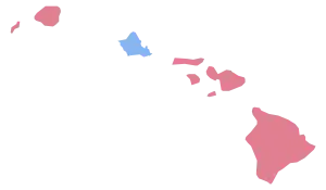 This was the last time Hawaii voted more Republican than the national average until 1972, when it voted 0.8% more Republican than the national average. This is also one of only two elections in which Hawaii's counties did not all back the same candidate, the other being 1980, where the winner of each county was of the opposite party as in 1960. Unlike in the 1960 election, Honolulu voting Republican in 1980 was not sufficient to single-handedly carry the state, while all three other counties voted for Jimmy Carter.[2] Even as of 2020, Hawaii's first presidential election remains the closest in the state's history.