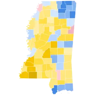 | Hinds | 5,811 | 20.05% | 11,083 | 38.23% | 12,094 | 41.72% | -1,011[lower-alpha 3] | -3.49% | 28,988 |