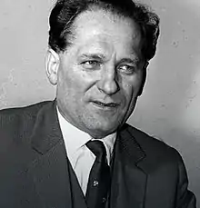 A media campaign commenced in Poland and was soon followed by "anti-Israeli imperialism" rallies held in various towns and places of employment.[16] After the government delegation's return to Warsaw, Gomułka, pessimistic and fearful of a possible nuclear confrontation and irritated by the reports of support for Israel among many Polish Jews,[16] on 19 June proclaimed at the Trade Union Congress that Israel's aggression had been "met with applause in Zionist circles of Jews – Polish citizens." Gomułka specifically invited "those who feel that these words are addressed to them" to emigrate, but Edward Ochab and some other Politburo members objected and the statement was deleted before the speech's publication. Gomułka did not issue a call for anti-Jewish personnel purges, but the so-called "anti-Zionist" campaign got underway anyway, supported by his close associates Zenon Kliszko and Ignacy Loga-Sowiński. It was eagerly amplified by General Mieczysław Moczar, minister of internal affairs, by some military leaders who had long been waiting for an opportunity to "settle with the Jews", and by other officials. A list of 382 "Zionists" was presented at the ministry on 28 June and the purge slowly developed, beginning with Jewish generals and other high-ranking officers of the Polish armed forces.[2][17] About 150 Jewish military officers were fired in 1967–68, including Czesław Mankiewicz, national air defense chief. Minister of Defense Marian Spychalski tried to defend Mankiewicz and by doing so compromised his own position.[18] The Ministry of Internal Affairs renewed its proposal to ban the Jewish organizations from receiving foreign contributions from the American Jewish Joint Distribution Committee. This time, unlike on previous occasions, the request was quickly granted by the Secretariat of the PZPR's Central Committee and the well-developed Jewish social, educational and cultural organized activities in Poland faced stiff reductions or even practical liquidation.[19]
