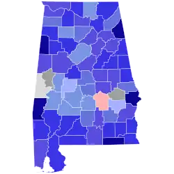 | Cullman | 11,134 | 67.60% | 5,225 | 31.72% | 111 | 0.67% | 5,909 | 35.88% | 16,470 |