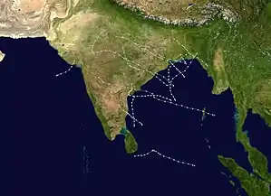 The 1969 North Indian Ocean cyclone season was an active cyclone season. The season has no official bounds but cyclones in the northern Indian Ocean tend to form between April and December. There are two main seas in the North Indian Ocean—the Bay of Bengal to the east of the Indian subcontinent and the Arabian Sea to the west of India. The official Regional Specialized Meteorological Centre in this basin is the India Meteorological Department (IMD), while the Joint Typhoon Warning Center releases unofficial advisories. An average of four to six storms form in the North Indian Ocean every season with peaks in May and November.[1] Cyclones occurring between the meridians 45°E and 100°E are included in the season by the IMD.[2]