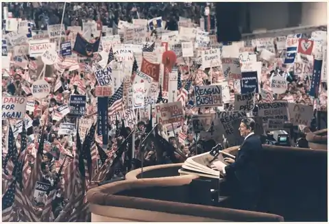 Reagan delivering his acceptance speech at the 1984 Republican National Convention in Dallas, Texas.