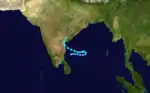 Tropical Cyclone 04B had a long life. It was first detected on 9 October, almost a week before the initial warning was issued, as an area of poorly organized convection in the South China Sea. The Tropical Disturbance was developing in the active monsoon trough, midway between Tropical Cyclone 03B in the Bay of Bengal, and a disturbance in the Philippine Sea that would soon develop into Typhoon Cecil. 38 people were killed when the 60 mph Tropical Storm Four hit the state of Odisha in India on October 16. Storm surge as high as 2 meters hit the villages of Chilika, Tangi and Krishna Prasad in at the time of landfall which resulted to be submerged for three days.