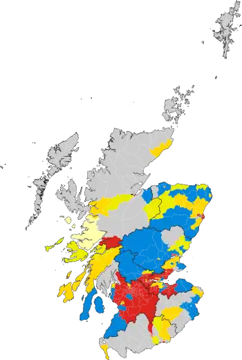 | Grampian | 18 (+2) | 15 (-11) | 12 (+7) | 9 (+5) | 3 | 57 | 35.61% | No overall control gain from Conservatives | Details | |