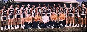 The 1988-89 team may have been the most talented team ever assembled at the University of Illinois. The team was so athletic that they could "run and alley-oop" baskets using even the non-starting players, and a record number of 100+ game scores reflected this fact. The players known as the “Flying Illini,” included all the important pieces from the 1987-88 squad (Kenny Battle, Kendall Gill, Steve Bardo, Lowell Hamilton, Nick Anderson and Larry Smith) as well as junior college All-American P.J. Bowman and former high school All-American Marcus Liberty. The Fighting Illini won their first 16 games and were ranked No. 2 in the nation going into a nationally televised game against Georgia Tech, whom Illinois had already beaten, 80-75, at the Rainbow Classic in December. The Yellow Jackets led, 47-31, but Illinois managed to surge back to force overtime, eventually needing two extra periods to win the game. Along with the No. 1 ranking the next day came some bad news. Illinois’ catalyst, Gill, had broken a bone in his foot and would miss the next 12 games. Hurt by the loss of Gill, Illinois lost three of the next four games and its No. 1 ranking. The Illini rallied to finish second in the Big Ten with a 14-4 record and with Gill back in the lineup, the Illini were awarded a No. 1 seed in the Midwest Region of the NCAA tournament. After rolling to victories over McNeese State and Ball State at the Hoosier Dome, a powerpacked regional in Minneapolis with Missouri, Louisville and Syracuse, stood in the way of Illinois’ trip to the Final Four. Louisville fell victim to Illinois, losing 83-69, which set up a regional final matchup with Syracuse. The Fighting Illini held off Syracuse to advance to the Final Four in Seattle where Illinois faced Michigan, a team it had beaten twice already in conference play, in the national semifinals. Michigan was inspired by the firing of their coach prior to the tournament, and won a game that contained 33 lead changes.[2] Despite Battle’s 29-point, 11-rebound effort, Illinois fell to eventual national-champion Michigan, 83-81.
