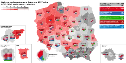 Parliamentary elections were held in Poland on 21 September 1997.[1] In the Sejm elections, 47.93% of citizens cast their votes, 96.12% of which were counted as valid. In the Senate elections, 46.92% of citizens cast their votes, 97.82% of which were valid.