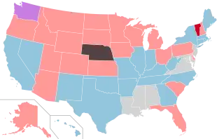 | Nebraska | 25[lower-alpha 6] | 49[lower-alpha 6] | 51[lower-alpha 6] | 4 | N/A (unicameral) | |||
