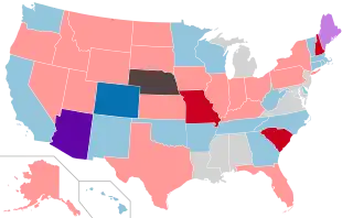 - ↑ The New Hampshire Senate became evenly-split due to a special election. Thus, it is not included in the prior total.
