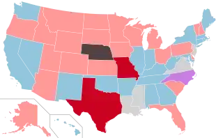 Republicans won a trifecta in Texas for the first time since 1873, and in Missouri for the first time since 1923. As a result, Republicans held a majority of state legislative seats for the first time in half a century.[3]