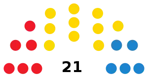 The following table lists party control in the Island Cabildos.[1] Gains for a party are displayed with the cell's background shaded in that party's colour.