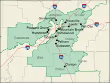 Voting in Alabama, like in other states of the Deep South, was heavily polarized by race. According to exit polls, 98% of black Alabamians voted Democratic while 88% of white Alabamians voted Republican.[19] Obama's 12 percent showing among white Alabamians was easily his worst in the nation, and prevented him from having any realistic chance of carrying the state.[20] Ultimately, McCain won by running up massive landslides in the state's suburban areas; several Birmingham, Montgomery and Mobile suburbs gave McCain over 70 percent of the vote. The old-line Dixiecrats in these areas began splitting their tickets as early as the 1940s; apart from Carter, some of these areas haven't supported a Democrat for president since Adlai Stevenson II in 1952.