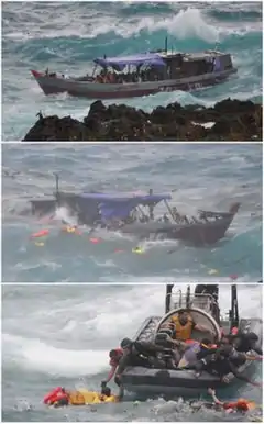 Amateur video of the sinking of SIEV-221, captured by Christmas Island residents, was broadcast on the evening news in Australia on 10 December.[22] The incident escalated domestic political debate in Australia regarding asylum seekers arriving by boat,[22][23] and became a turning point in asylum seeker policy.[24]