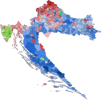 The elections yielded a surprise victory for the conservative HDZ, though most opinion polls had predicted the People's coalition would have the largest share of seats in Parliament.[15] The People's Coalition's unexpected defeat was, among other things, attributed to the release of a leaked audio recording of former Prime Minister and coalition chairman Zoran Milanović speaking at a private meeting with Croatian war veterans. In the recording Milanović used numerous derogatory terms, calling Serbs ʽʽpitifulˮ and stating that "Bosnia and Herzegovina is not a countryˮ and it is thought that these statements undermined support for the People's Coalition among minority voters.[16] The HDZ, which had trailed the People's coalition in opinion polls for over two months prior to the election and was thought to be facing certain defeat, managed under its new leader, MEP Andrej Plenković to shed the image of being a corruption-engulfed right-wing party for a more Europe-oriented centrist one.[16] Low turnout is also thought to have contributed to the unexpectedly large number of seats won by the HDZ, as their voters and supporters were expected to have a high turnout rate on election day. After the election Milanović announced that he would not stand for reelection as party chairman of the SDP in the upcoming leadership election.[17] Following the conservatives' victory, the stock market reacted generally favourably to the election results.[18]
