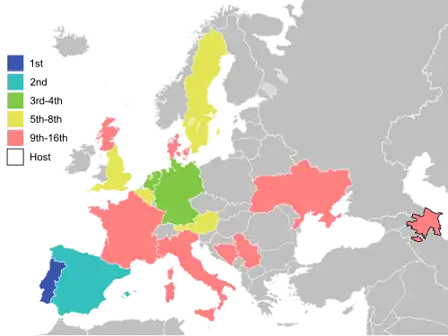 The national teams from all 54 UEFA member associations entered the competition. With Azerbaijan automatically qualified as hosts, the other 53 teams contested a qualifying competition to determine the remaining 15 spots in the final tournament.[5] The qualifying competition consisted of two rounds: the qualifying round, which took place in autumn 2015, and the elite round, which took place in spring 2016.[6]