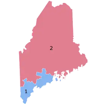 - ↑ Bush won the entire state of Maine in addition to the 2nd district, not on a split vote.