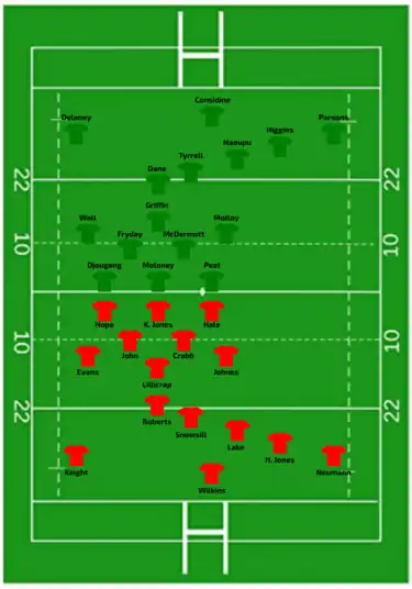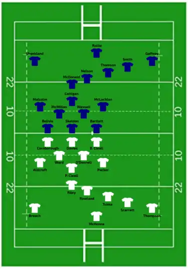 | 17:00 BST (UTC+01:00) | Try: Gaffney 5' m Kennedy 29' c Belisle 35' m Gallagher 54' c Con: Nelson (2/4) 30', 55' Pen: Nelson (1/1) 70' |