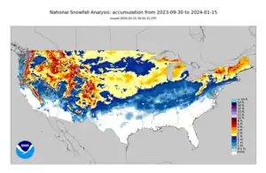 The 2023–24 North American winter refers to winter in North America as it is occurring across the continent from late 2023 to early 2024. The season began at the winter solstice, which occurred on December 21, 2023, and will end at the spring equinox on March 19, 2024.[1] Based on the meteorological definition, the first day of winter started on December 1 and the last day will be February 29.[2] However, winter storms may occur outside of these limits.
