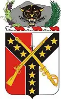 • Crest – The wreath, consisting of a grapevine and palm branch refers to the citation awarded the unit for campaigns in Colmar and Tunisia. The stylized mountain signifies the strength and steadfastness of the Regiment. The panther crushing the tank, adapted from the Tank Destroyer shoulder sleeve insignia, recalls the unit's history.