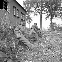 The 71st Infantry Brigade was reformed in the Second World War on 28 November 1940, by the redesignation of the Headquarters of 3rd London Infantry Brigade. On 12 December it was again redesignated 71st Independent Infantry Brigade. The new 71st Brigade consisted of three infantry battalions raised earlier in the year specifically for war service, the 7th King's Own Royal Regiment (Lancaster) and 8th and 9th York and Lancaster Regiment. The battalions were all transferred to British India on 14 June 1942 and the brigade ceased to be independent and was again redesignated 71st Infantry Brigade.[3] On the same date, the battalions in the brigade were replaced by the 1st Battalion (a Regular unit) of the East Lancashire Regiment and 1st (also Regular) and 13th (a war service battalion) Highland Light Infantry (the 13th were later replaced by 1st Ox and Bucks). Again on 14 June brigade became part of the 42nd Armoured Division, previously the 42nd (East Lancashire) Infantry Division.