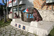 In Ishigaki, there is the 730 Crossing (730交差点) with a 1m tall memorial stone.[7] In Miyakojima, there is the 730 Memorial Tower (730記念塔).