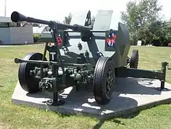 During the opening stage of the Rhine crossing (Operation Plunder) 3rd Division was a follow-up formation, holding the west bank of the river while 51st Highland made the assault crossing on the night of 23/24 March 1945. However, 92nd LAA Rgt participated in the 'Pepperpot' attacks, in which every gun or mortar in range fired intensively to saturate enemy ground positions before the infantry went in.[23][24][25] Each battery of 92nd fired between 4500 and 6500 rounds, the regiment as whole firing 32,000 rounds over the fours days. D Troop also fired 46 rounds from a captured 88 mm Flak gun.[6]