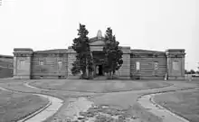 In 1943,[3] the federal government purchased most of the second lot from Abbey Mausoleum Inc., leaving the mausoleum with just 0.5 acres (2,000 m2) of land,[1] (another source says 0.7 acres (2,800 m2) of land)[3]