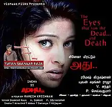 Adhu (transl.That) is a 2004 Tamil-language horror film directed by Ramesh Balakrishnan, starring Sneha as a spirit possessed girl. The film, that has Aravind, a newcomer, Suha, Kazan Khan and Vijayan in supporting and Abbas in a cameo role, is a remake of the 2002 Hong Kong-Thai-Singaporean film The Eye. The film, with music scored by Yuvan Shankar Raja and cinematography by P. Selvakumar, released on 15 October 2004 and received generally negative reviews and is considered a box-office disaster.[1]