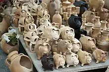 Alcancías takes as its subject a very typical product of Mexican popular art, those multicolored pottery penny-banks, usually small and in the form of a pig or fish, which generally must be broken in order to remove the money inside.[1] The work was composed in the first half of 1932, and was completed in July.[2]