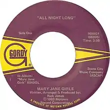 "All Night Long" is a song written, arranged, and produced by American musician Rick James for the Mary Jane Girls.