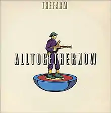 "All Together Now" is a song by British band the Farm and the second single from their debut album, Spartacus (1991). The song was released in November 1990 by Produce, Jive, Sire and Reprise. Vocalist of the band, Peter Hooton wrote the lyrics in his early 20s, after reading about the Christmas truce of 1914. The song was first recorded under the title "No Man's Land" for a John Peel session in 1983.[2] In 1990, Hooton wrote the chorus after Steve Grimes suggested putting the lyrics of "No Man's Land" to the chord progression of Pachelbel's Canon. To shorten the song for radio, the producer Suggs cut the song to three verses from its original six. Its accompanying music video received heavy rotation on MTV Europe.[3] "All Together Now" has been used by numerous football teams since, as well as by the Labour Party for their 2017 general election campaign, often played during rallies.