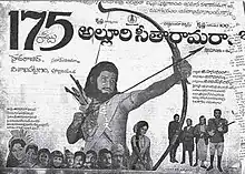 Alluri Seetarama Raju is a 1974 Indian Telugu-language biographical action film directed by V. Ramachandra Rao and written by Tripuraneni Maharadhi. The film stars Krishna, Vijaya Nirmala, and Jaggayya. It is produced by Padmalaya Studios marking the 100th film of Krishna.[1] The film depicts the life of Alluri Sitarama Raju, an Indian revolutionary, who is known for his role in the Rampa Rebellion of 1922–24. Seetarama Raju, with a band of farmers, tribal leaders and other sympathizers, fought an armed rebellion against the British Raj in response to repressive legislation passed in 1882.