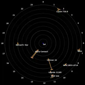 - 1 2 "The One Hundred Nearest Star Systems". Research Consortium On Nearby Stars. Georgia State University. 7 September 2007. Archived from the original on 12 November 2007. Retrieved 2 December 2014.