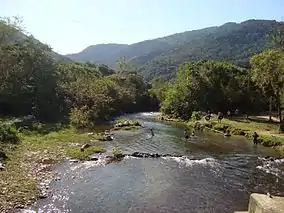 The Alto Ribeira Tourist State Park is divided between the municipalities of Apiaí and Iporanga in the state of São Paulo, lying 320 kilometres (200 mi) away from the city of São Paulo. It has over 350 caves, many waterfalls, trails and archaeological and paleontological sites. There are traditional and quilombola communities in the park.[1] There are four visitor centers and support for enforcement activities and research in order to safeguard and protect the rich natural heritage of the upper Ribeira region, represented by the important biodiversity of the remnants of the Atlantic Forest and its paleontological, archaeological, and historical sites. It is home to one of the most important speleological provinces in Brazil with more than 300 caves registered by the SBE - Sociedade Brasileira de Espeleologia.[2]