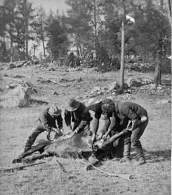 - ↑ "We took the horses along and they amounted to three or four hundred head." DeBarthe, Joe (1958). "Frank Grouard's Story of the Battle". Life and Adventures of Frank Grouard", (hereinafter "Grouard"), University of Oklahoma Press. p.307-311. The troopers also captured about 300 fine ponies to partly replace their dead horses. Strahorn, Autobiography, p. 203-204.